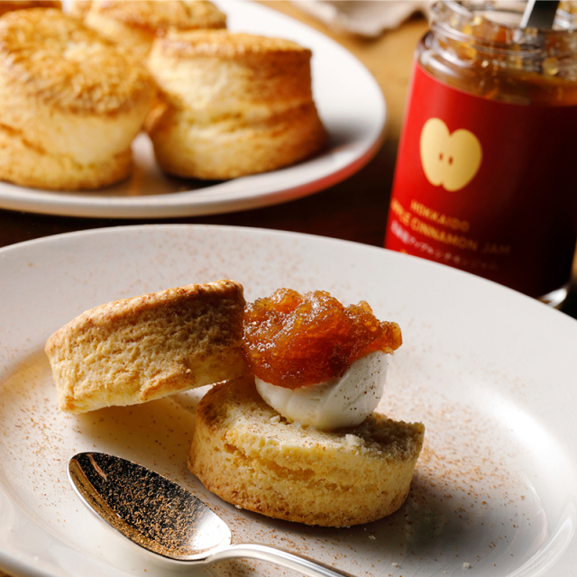 北海道産りんごのやさしい甘さに、シナモンを中心としたスパイスの温もりを重ねた、香り豊かなアップルシナモンジャム。