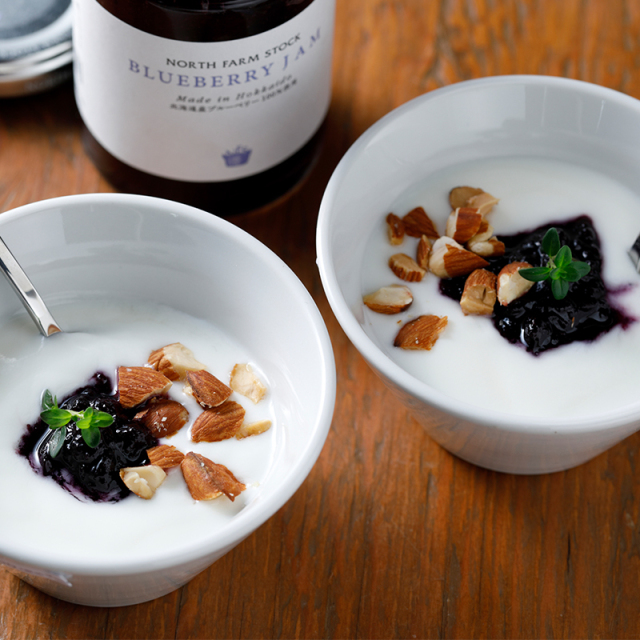 北海道で採れたブルーベリーを100%使用。爽やかな酸味をお楽しみください。パンはもちろんクラッカーやアイスクリームとの相性も良く、幅広くお使いいただけるジャムです。
