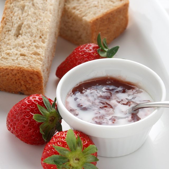 北海道町村農場の生乳で作られた練乳と北海道産完熟いちご。