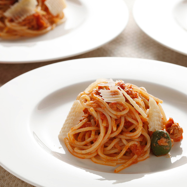 厳選された北海道産のイタリアントマトを使い、甘味野菜をじっくり炒めたソフリットでコクのあるトマトソースに仕上げました。茹でたパスタにあえるだけで、本格的なトマトパスタをお楽しみいただけます。